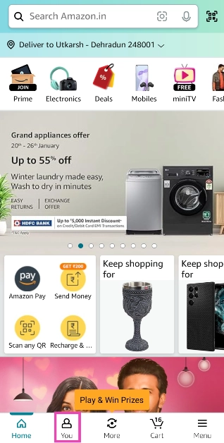 Schritt 1: StartÖffnen Sie die Amazon-App auf Ihrem Smartphone und wechseln Sie zurSie tab.