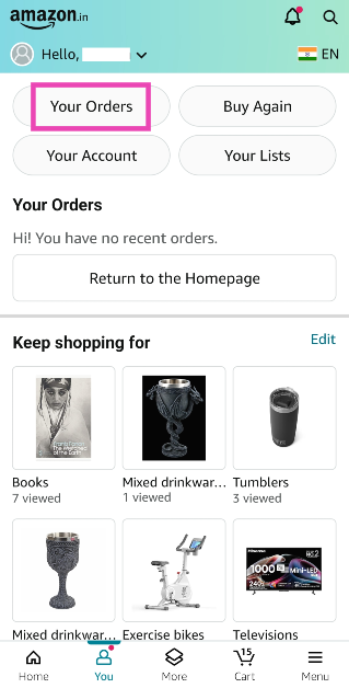 Schritt 2:Tippen Sie aufIhre Bestellungen.