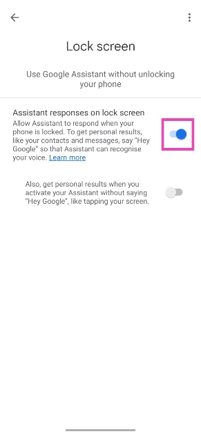 Schritt 4:Schalten Sie den Kippschalter einAssistentenantworten auf dem Sperrbildschirm.