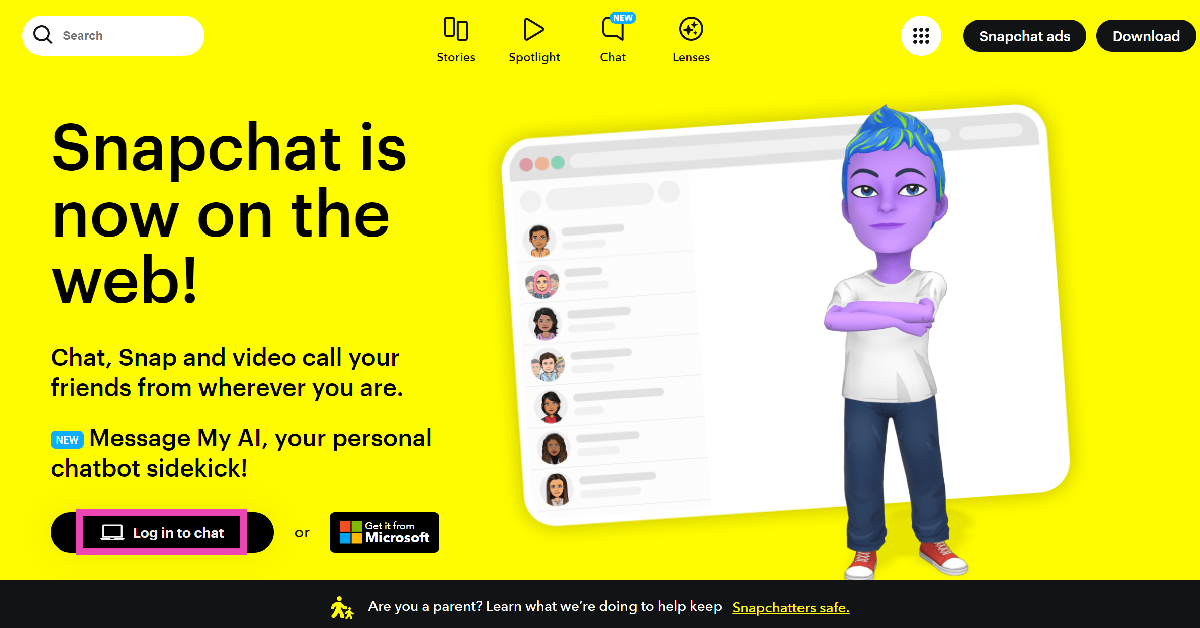 Snapchat verfügt über ein praktisches Webportal, über das Sie auf Ihr Konto zugreifen können. Der einzige Haken ist, dass es nur auf Google Chrome, Microsoft Edge und Safari funktioniert. Gehe zumoffizielle Snapchat-Websiteund klicken Sie auf „Zum Chatten anmelden“. Dadurch werden Sie zur Anmeldeseite weitergeleitet, auf der Sie Ihren Benutzernamen/Ihre E-Mail-Adresse/Telefonnummer und Ihr Passwort eingeben müssen, um auf Ihr Snapchat-Konto zuzugreifen. Anders als bei WhatsApp und Telegram können Sie sich beim Snapchat-Webportal nicht per QR-Code anmelden.