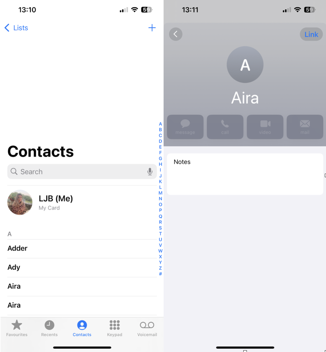 Öffnen Sie in „Kontakte“ eine der doppelten Karten.
