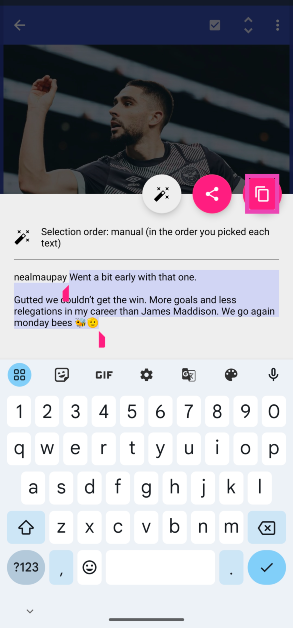 Schritt 5:Mit der Universal Copy-App können Sie jeden gewünschten Text in der App auswählen.Hervorhebendie Bildunterschrift undKopiees in die Zwischenablage.