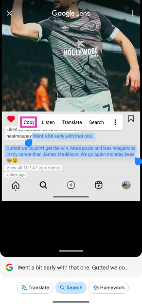 Kopieren Sie Instagram-Kommentare und Bildunterschriften auf Android mit Google Fotos