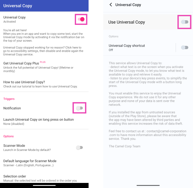 Schritt 2:Öffnen Sie die App und aktivieren Sie sieVerwenden Sie Universal Copy. Erteilen Sie der App die erforderlichen Berechtigungen, wenn Sie dazu aufgefordert werden.