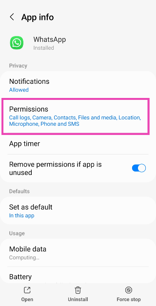 Schritt 3:Tippen Sie aufBerechtigungen.