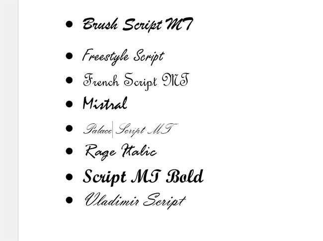 Wie bereits erwähnt, gibt es eine Handvoll kursiver Schriftarten, auf die Sie Zugriff haben, bevor Sie sich auf die Suche nach einer eigenen machen.