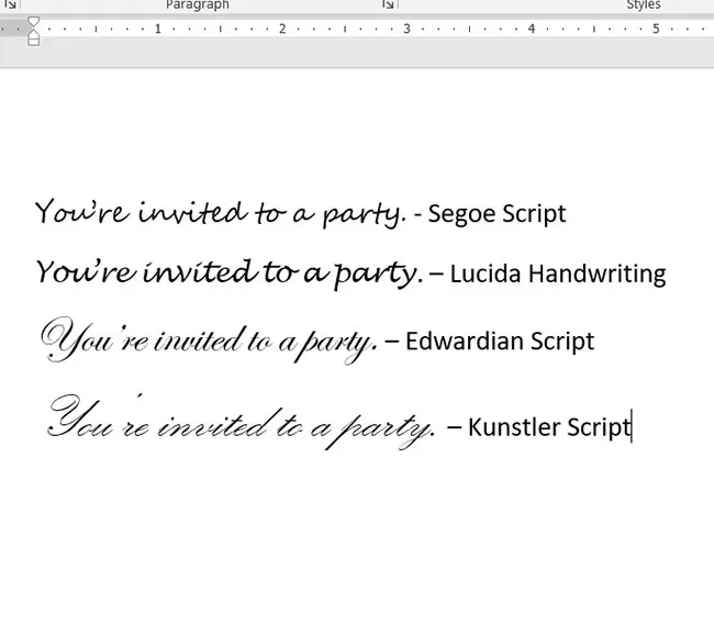 Es gibt einige andere standardmäßige kursive Word-Schriftarten, die Ihnen gefallen könnten, darunter Optionen wie: