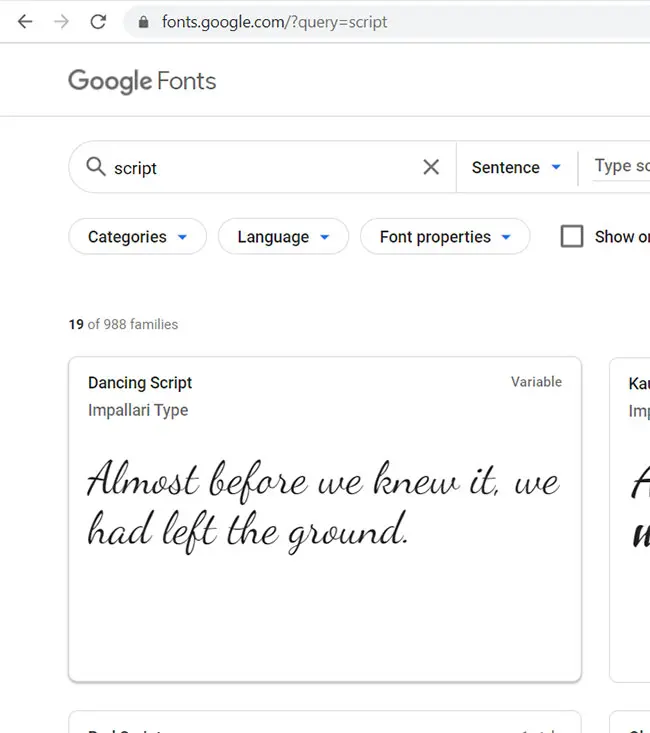 Unsere Liste oben enthält einige gute Optionen, wenn Sie eine ausgefallene Schriftart benötigen, aber Sie können auch einige ansprechende Optionen finden, wenn Sie zu Google Fonts gehen und durch die Kategorie „Handschrift“ scrollen. Hier gelangen Sie direkt zu dieser Kategorie –Google Handwriting-Schriftarten.