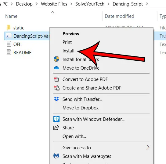 Schritt 8: Klicken Sie mit der rechten Maustaste auf die Schriftartdatei und wählen Sie sie ausInstallierenOption.