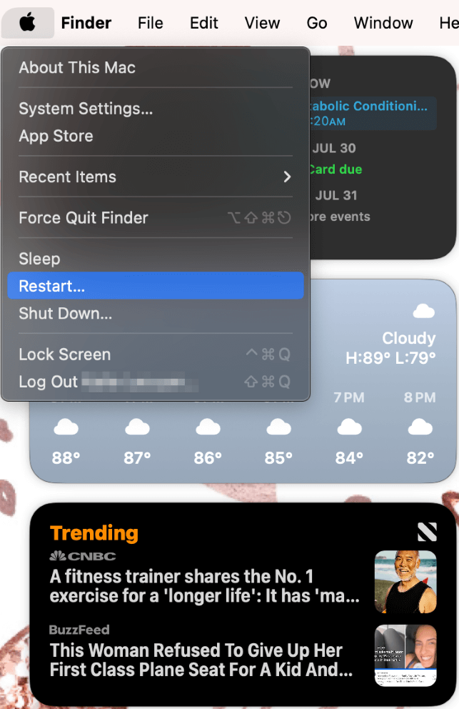 Das erste, was Sie versuchen sollten, wenn Ihr Mac nach einem Sonoma-Update langsamer zu werden scheint, ist einen Neustart. Durch einen Neustart Ihres Computers werden alle derzeit ausgeführten Prozesse gestoppt, Ihr Speicher aktualisiert und der Cache für den Prozessor geleert. Alle diese Elemente können dazu beitragen, „steckengebliebene“ Prozesse oder Speicherüberlastungen zu beseitigen.