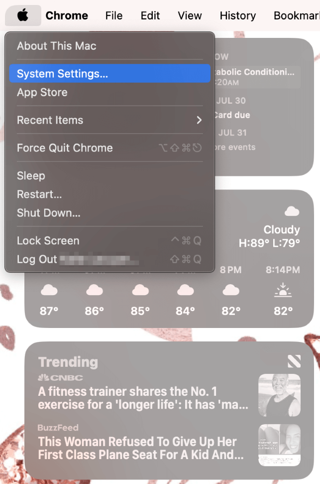 Klicken Sie auf das Apple-Menü und klicken Sie aufSystemeinstellungenaus dem Dropdown.