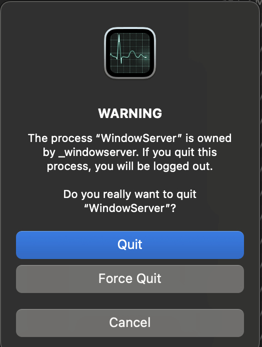 Wenn Sie etwas aufgeben, werden Sie dazu aufgefordertKlicken Sie auf „Beenden“.oderBeenden erzwingenzu bestätigen.