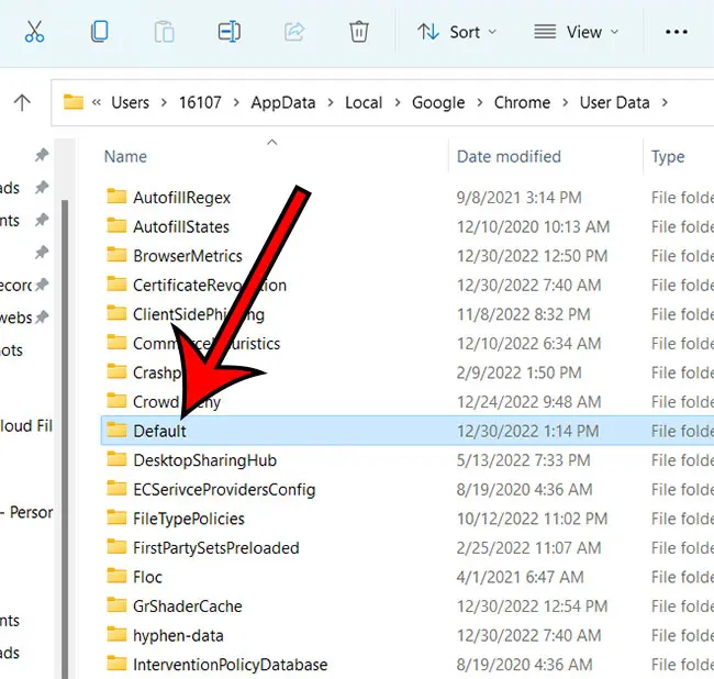 Schritt 1: Navigieren Sie zuStandardOrdner mit der Chrome-Lesezeichendatei unter „C:\Benutzer\(IhrBenutzername)\AppData\Local\Google\Chrome\Benutzerdaten\” oben beschriebener Standort.
