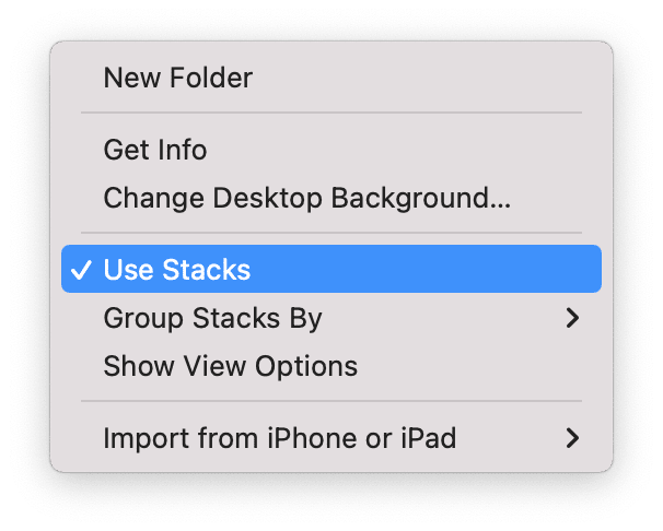 Um Stacks zu aktivieren, klicken Sie mit der rechten Maustaste auf eine beliebige Stelle auf Ihrem Desktop und klicken Sie auf „Stapel verwenden“.